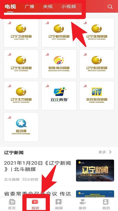 2、视听模块包含电视、广播、央视及小视频等栏目,用户能够挑选不同频道观看,以此满足多样化的视听需求。