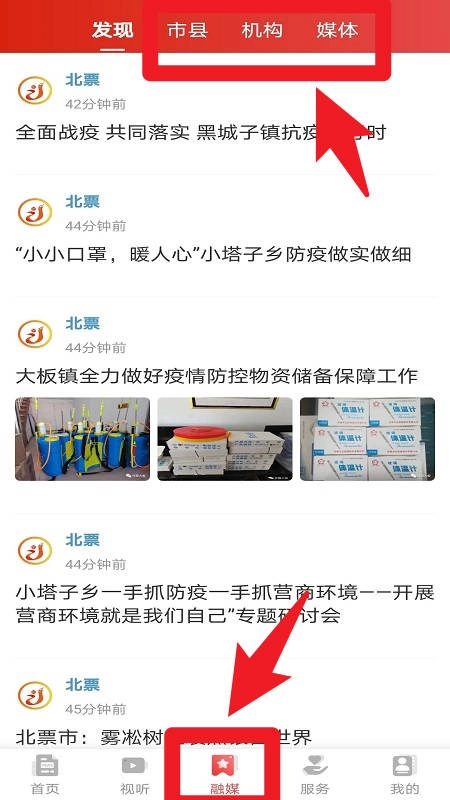 3、融媒页面设有市县、机构及媒体分类入口,便于用户快速获取各地新闻动态与机构发布的权威信息,优化使用体验。