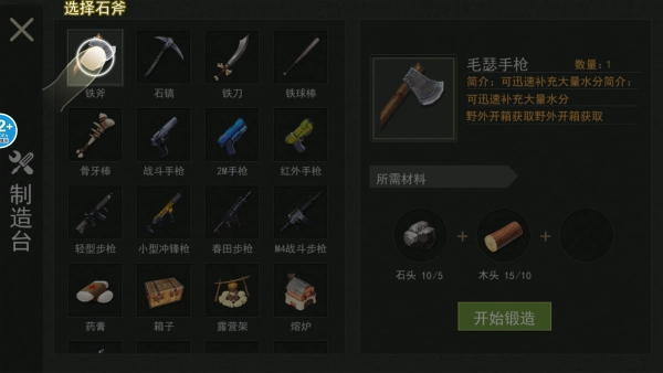 4、你得徒手去收集树枝、石头这类基础资源,再用它们制作出最开始的工具和武器,这样才能更好地生存下去。