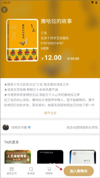 旧书街正版,1、在首页挑选心仪书籍,点击进入书籍信息界面。