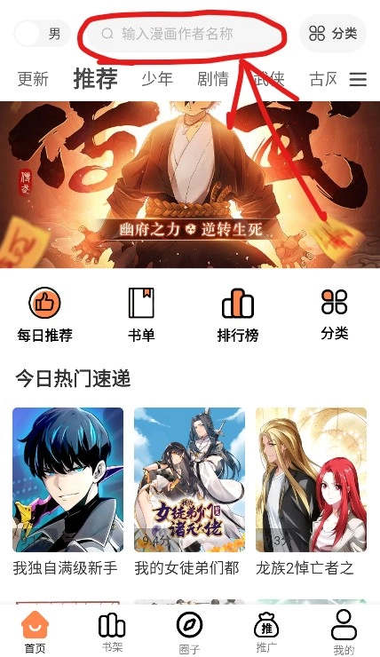 2、输入想看的漫画或作者的全称或关键词,然后点击对应的关联结果