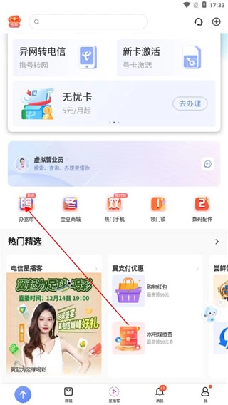 1、在本站完成软件的安装与启动操作,进入对应页面后点击“办宽带”选项。