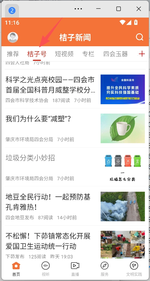 《桔子新闻》设有推荐、桔子号等栏目,用户可以浏览科普、环保等各类新闻内容,点击文章即可查看详细信息并订阅相关内容。此外,平台还设有文明实践板块,该板块展示民众的微心愿,同时提供志愿团体的相关信息,便于用户了解本地的文明活动以及志愿资源,从而助力用户获取新闻资讯和参与文明实践活动。