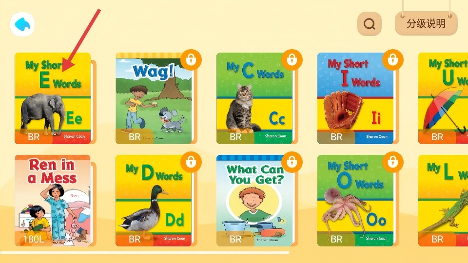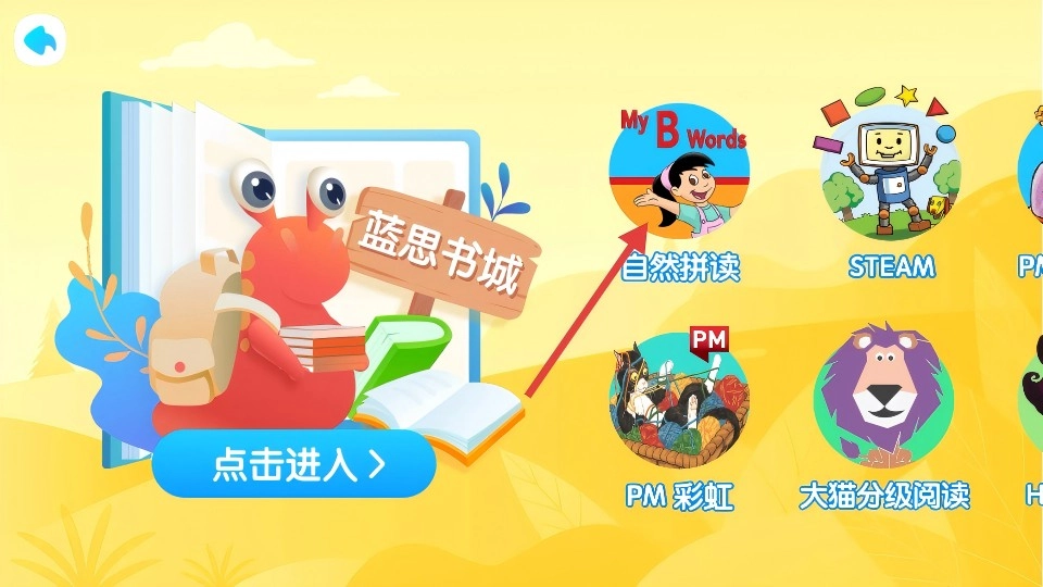 在蓝思书城页面,点击【自然拼读】选项,就能进入自然拼读书籍列表页面。