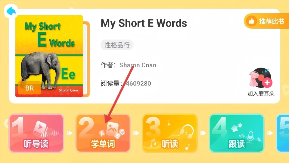 在书籍详情页,点击【学单词】按钮,开始单词学习。