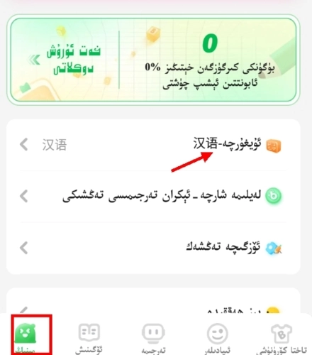 当处于维语模式时,再次点击就可以切换成汉语界面。
