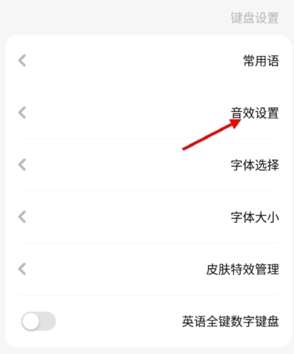 在这里选择键盘设置中的音效设置。