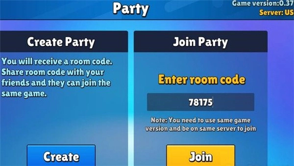 点击右侧的PARTY按钮就能进入多人模式,在这里你既可以自行创建房间,也能通过输入好友分享的房间代码来加入对方的房间。