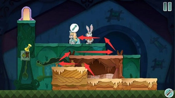 按照教学指引,把红色方块向左拖动,将兔子的图案拼接完整就能触发对话。