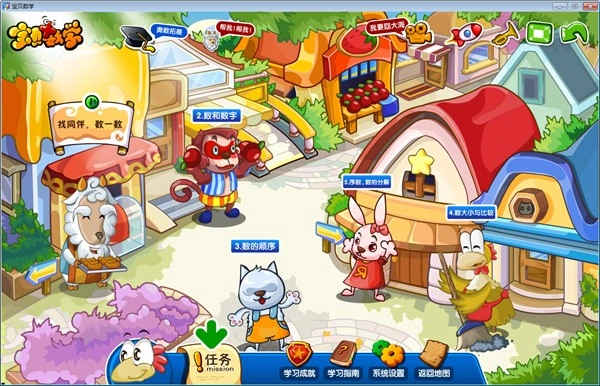 1、探索数学天地:能在软件里自主探索计数、运算、几何图形等数学领域,借助互动游戏和动画故事来理解相关知识;