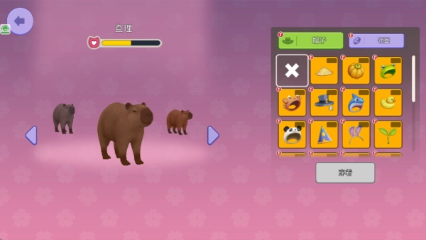 4.玩家还可以获取各种装饰道具,为水豚等动物进行造型设计,让你的动物们看起来更加