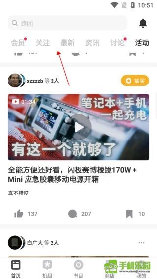 首页板块中可以看到推荐的资讯,也可以查看自己的关注、谈论活动等