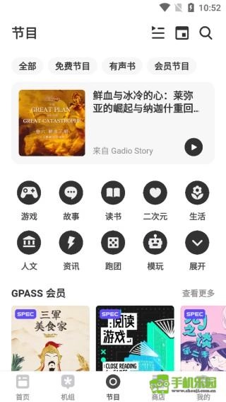 1.【原创电台节目】机核出品的原创电台节目兼具深度与趣味性,曾3次入选iTunes Podcast年度推荐节目。此外,我们还为GPASS会员准备了专属的GadioSpec系列及会员独享电台内容,期待你的加入;