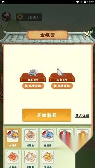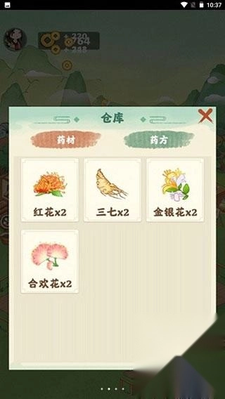 3、在仓库可以看到自己拥有的药材,获得任何获得的药方也可以在这里查看。