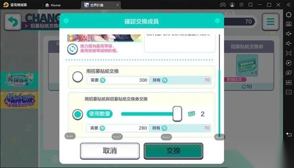 300张贴纸→交换1次「卡池主推的★4角色」,用来兑换当期限定角色。