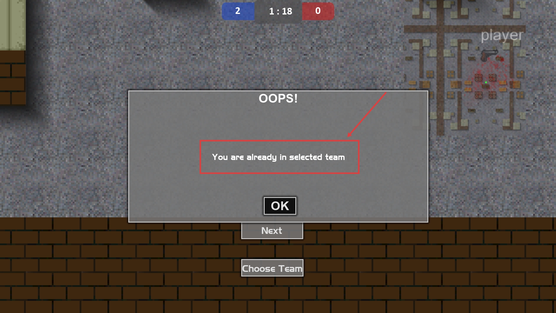 1、当出现【Oops】提示且内容为【Youarealreadyinselectedteam】时,点击下方的【OK】按钮就能继续游戏流程,不需要重复进行选队操作。