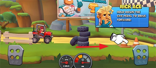 1、玩家进入赛场后,可通过右侧的加速按钮直接进行加速操作,从而让赛车直接启动并移动。