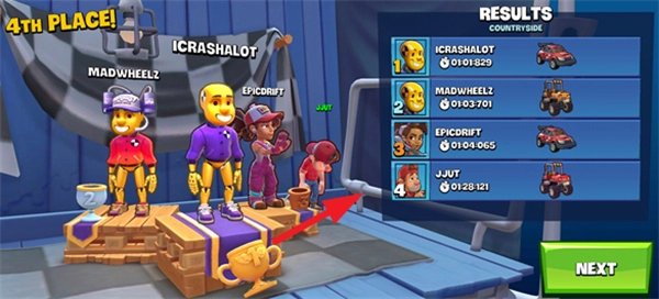 玩家可以随时使用道具,以此直接提升汽车速度,超越对手自然不在话下,自然也能获得一个很高的排名。