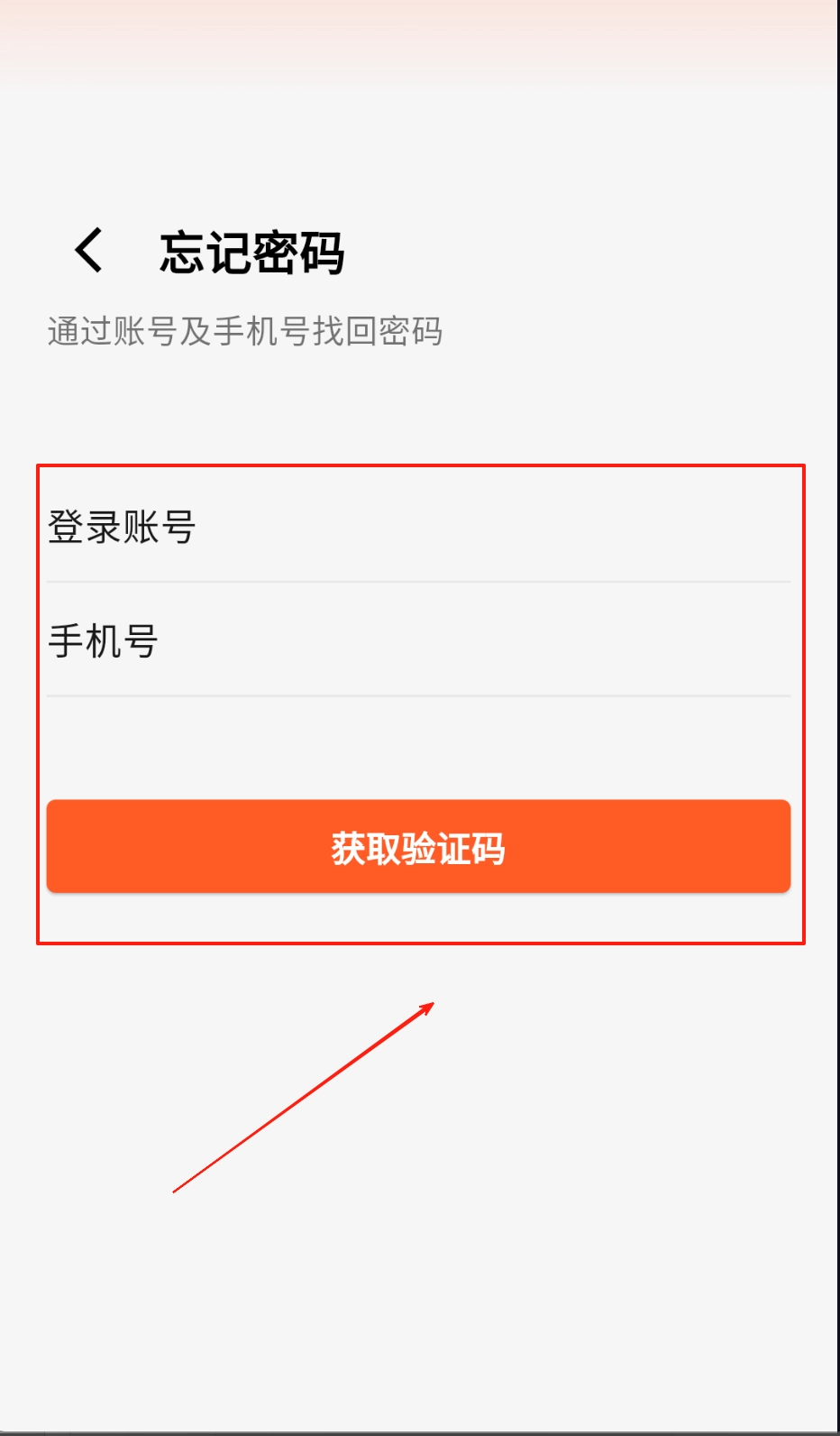 2、要是密码忘了别着急,点击"忘记密码"进入找回页,按提示输入账号和绑定的手机号,点橙色按钮获取验证码继续操作。