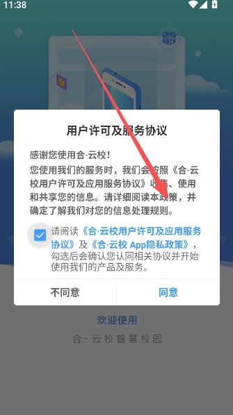 1、仔细阅读用户及服务许可协议,点击“同意”按钮后进入下一步。