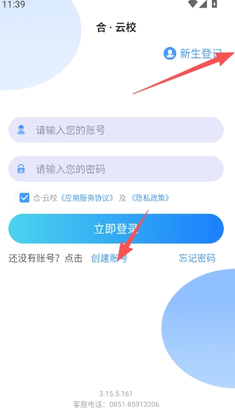2、点击新生登记或是创建账号的方式进入。