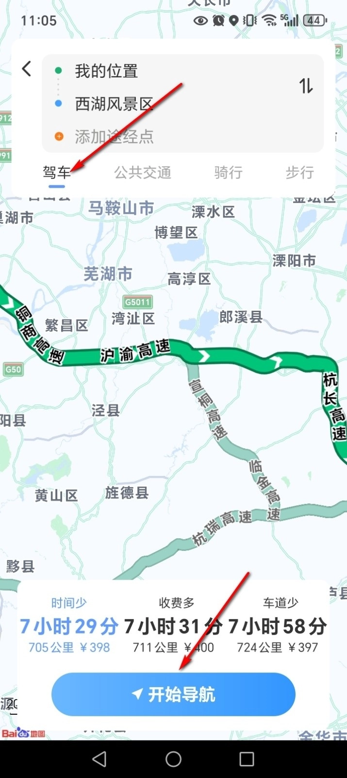 选择出行方式,点击【开始导航】