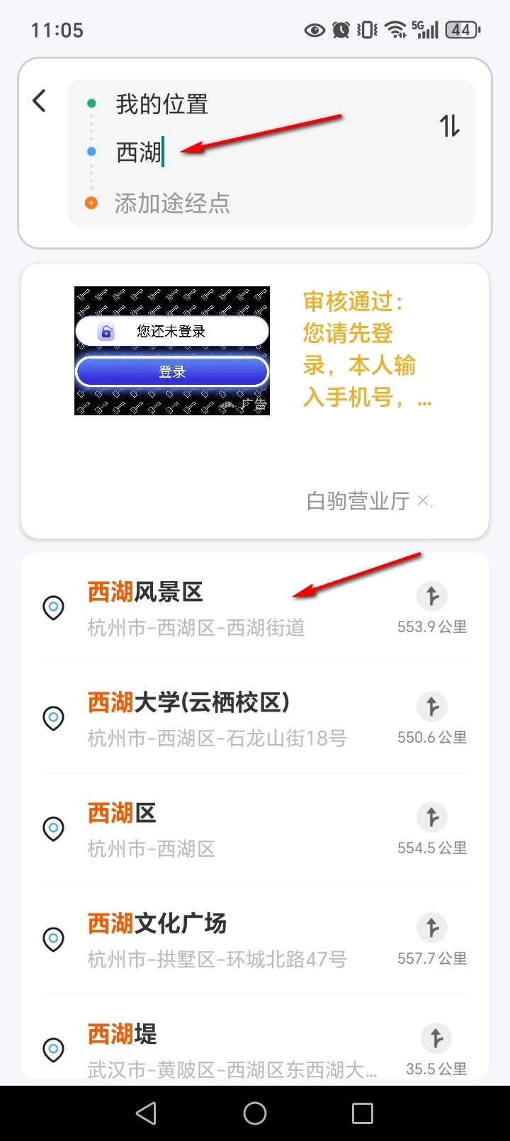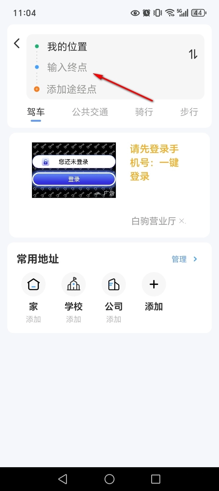 输入地点关键字,选择目的地