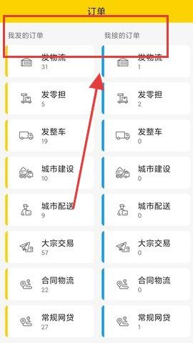 1、进入匠神来运物流交易平台订单页面,找到我的订单标签区域,点击对应标签,可切换查看自身发布或承接的订单分类,如发物流、发零担等订单详情。