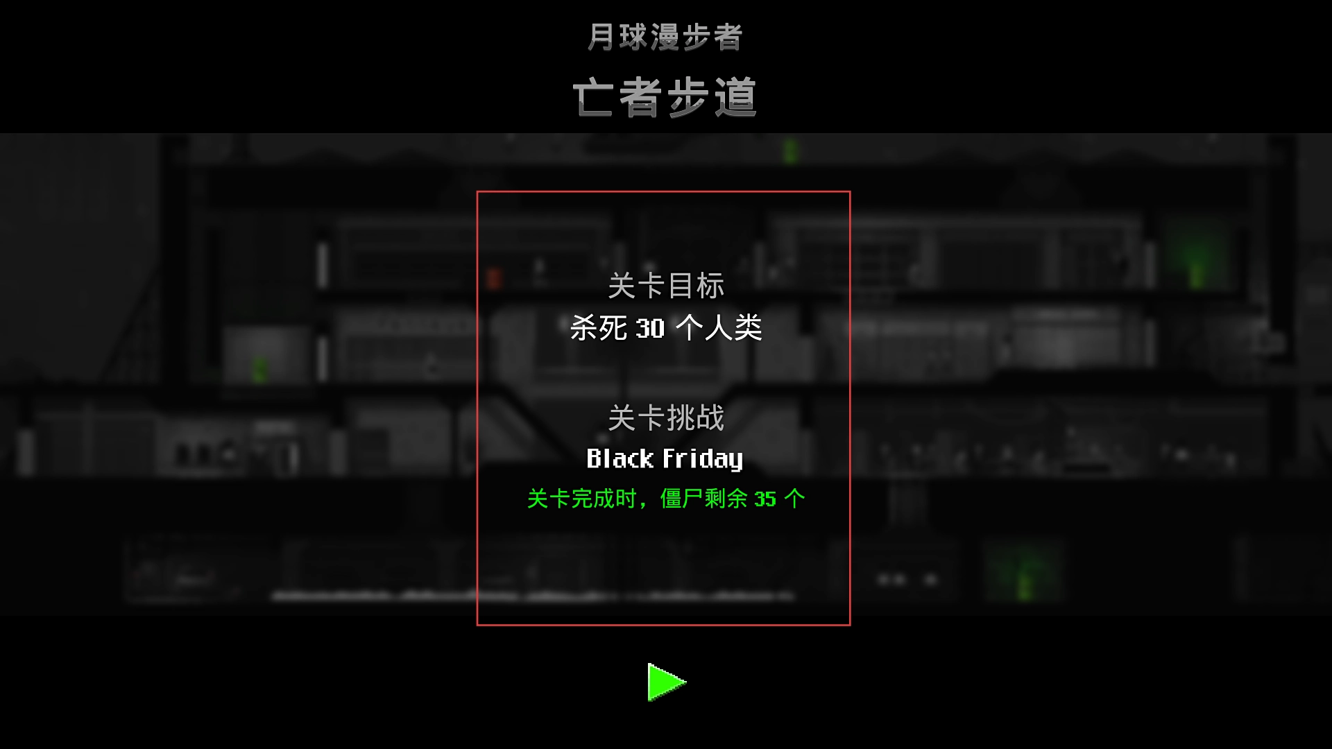 2、进入关卡选择界面后,选择【亡者步道】这一关卡,查看并了解该关卡的目标——击杀【30】名人类,同时需挑战【BlackFriday】。