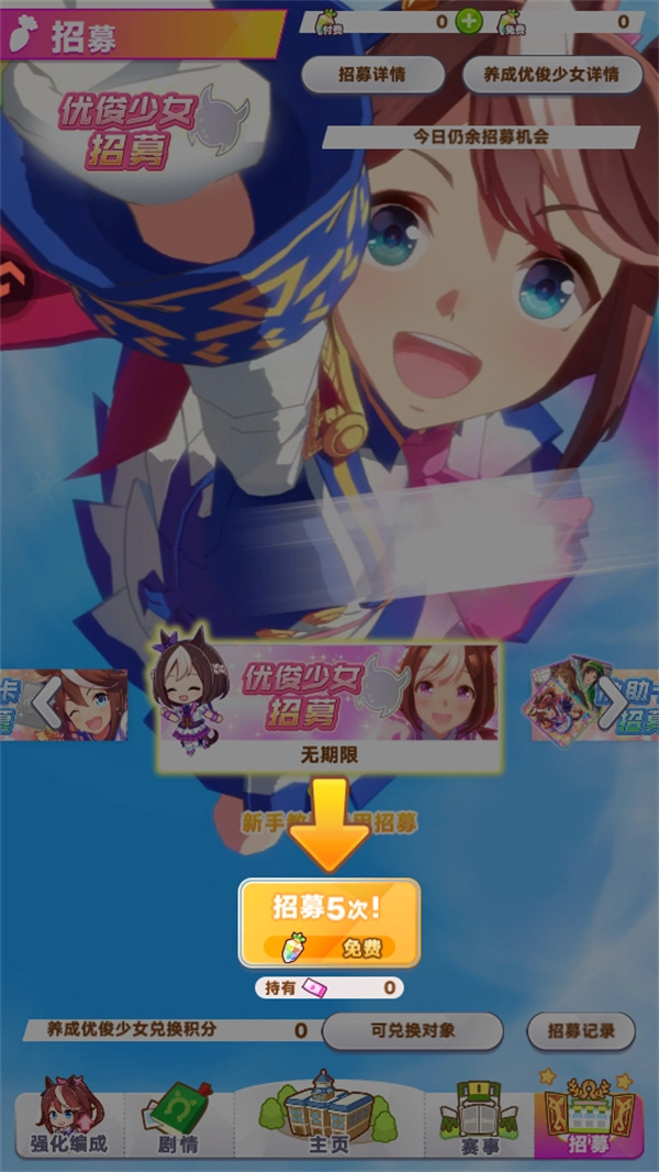 5、如果需要新的优俊少女请前往招募消耗资源获得。