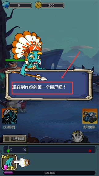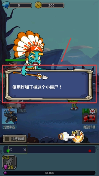 1、按照提示用炸弹攻击指定的小僵尸,达成初期战斗目标,从而快速掌握基础操作流程。