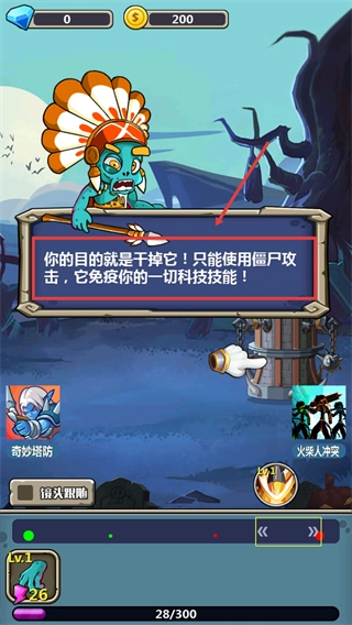 4、明确战斗目标为摧毁敌方单位,仅可使用僵尸攻击,敌方免疫所有科技技能。