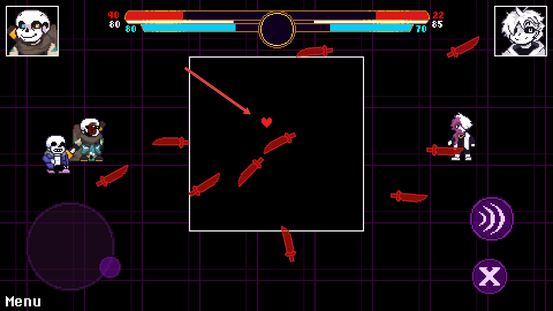 3、面对【红色攻击】时,操控【心形灵魂】灵活移动避开攻击范围,保障自身在战斗中的安全。