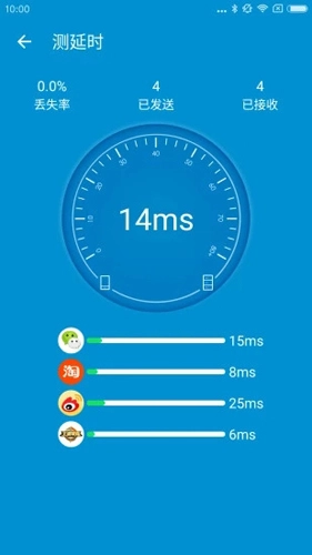 4、支持测延时,查看自己的手机软件延迟多少。