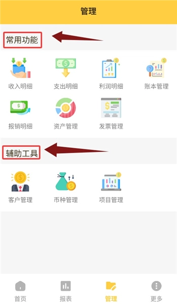 4、管理界面提供常用功能入口与辅助工具,便于日常财务管理。