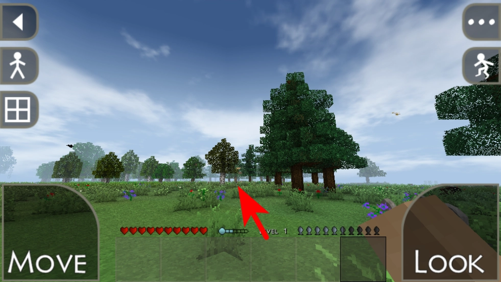 3、进入游戏场景后,通过MOVE控件操控角色移动,探索初始出生区域。