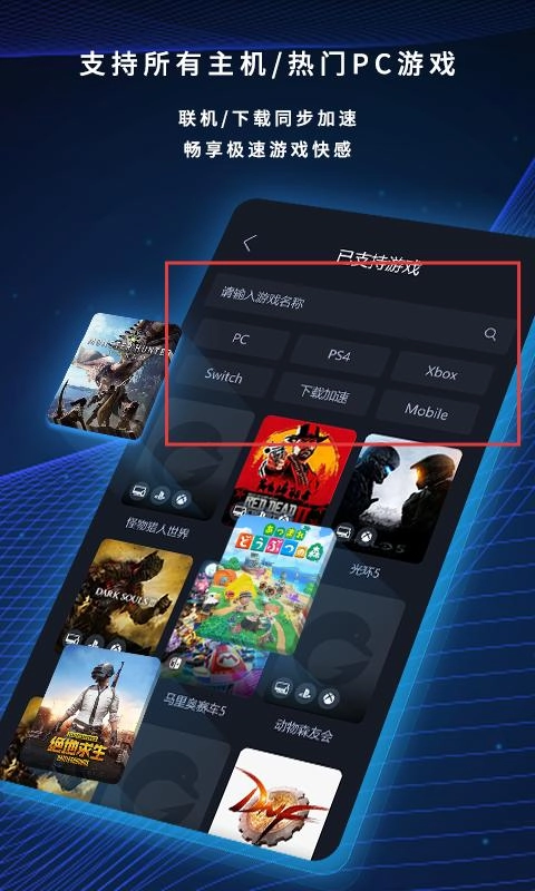 3、在已支持游戏界面,可通过输入框搜索游戏,或按【PC】【PS4】等类别查找游戏。