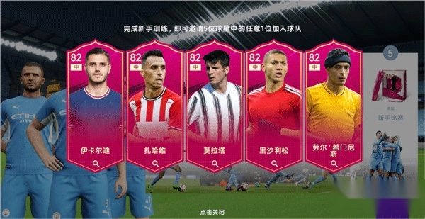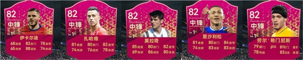 红卡的数值范围是77-82,所以新手引导过后,送的中锋是红卡数值最高的,还算可以。五个前锋中比较推荐里沙利松和莫拉塔吧,不过有了黑卡前锋,红卡都要放冷板凳凉凉了