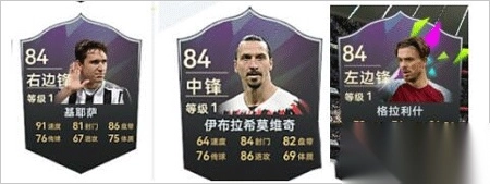第七天登录游戏,总算拿到一张黑卡了。之前提过1级黑卡球员的能力值在83到93之间,这次是三选一的球员选项:伊布的身高和射门很有优势,不管是头球争顶还是禁区内搓射都很好用,美中不足的是速度和体质稍微偏低;格拉利什的进攻能力和体质相对弱一些;基耶萨的速度能到91,算是很快的了,但进攻和传球能力对比下来就稍显逊色。