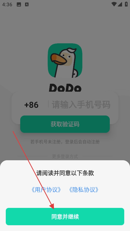3、勾选协议后点击【同意并继续】,进行后续登录注册流程。