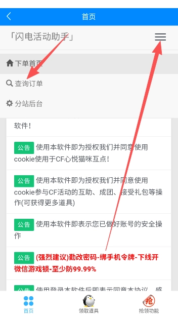 1、点击首页就能看到各类公告,对于刚上手这款软件的用户而言,使用注意事项方面的内容格外重要。