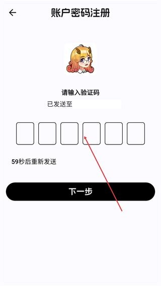4、在【账户密码注册】页,填入已发送至对应手机号的验证码,点击【下一步】完成注册。