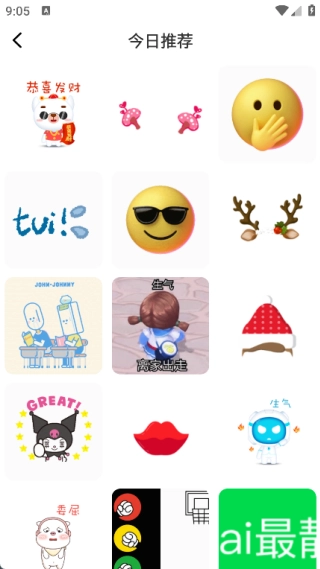 2、在今日推荐页面中有非常多不同的表情包,用户可以随时使用表情包;