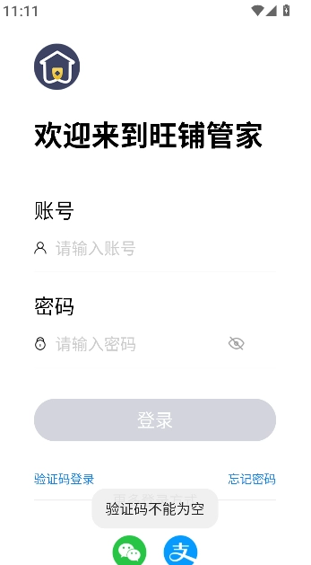 打开《旺铺管家》软件后,能选择通过微信直接登录,进而进入系统首页。