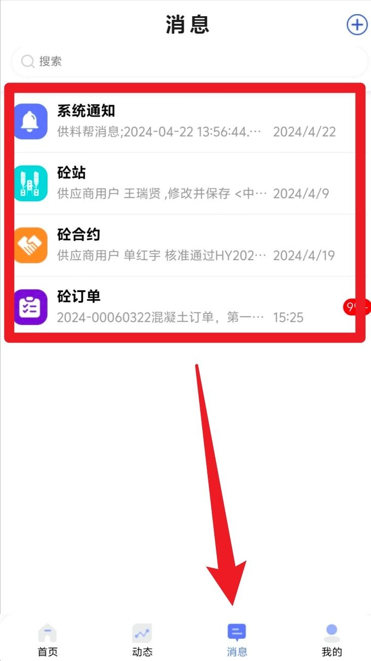 4. 点击底部导航栏的“消息”选项,就能进入通知中心,在这里可以查看系统通知、合同动态以及订单提醒等各类信息。