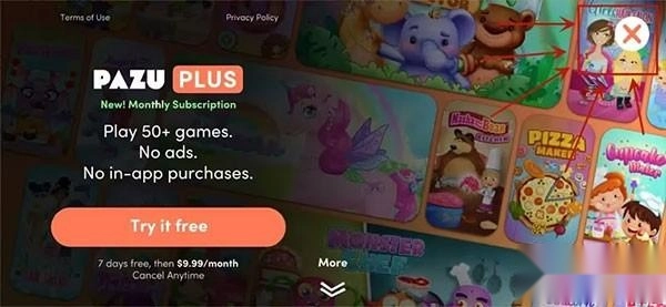 第三步:出现一个游戏的广告,点击右上方的【X】把它关掉