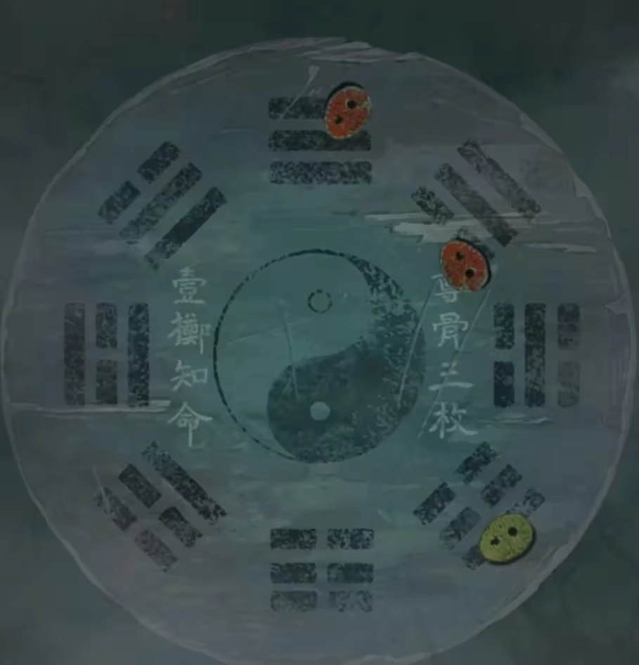 切换到大地图后前往【称骨斋】,找到左下角的八卦桌,使用【骨币】即可获取线索,需记录:【三长=红,长长短=红,长短短=黄】。之后返回【喜送阁】,查看左上角悬挂的棺材,把【长命锁】放置在右上角刻有“长命百岁”的棺材上,待三个棺材全部打开后,可得到另一半线索,记录内容为:【短短短=红,短长长=黄,长短长=红】。