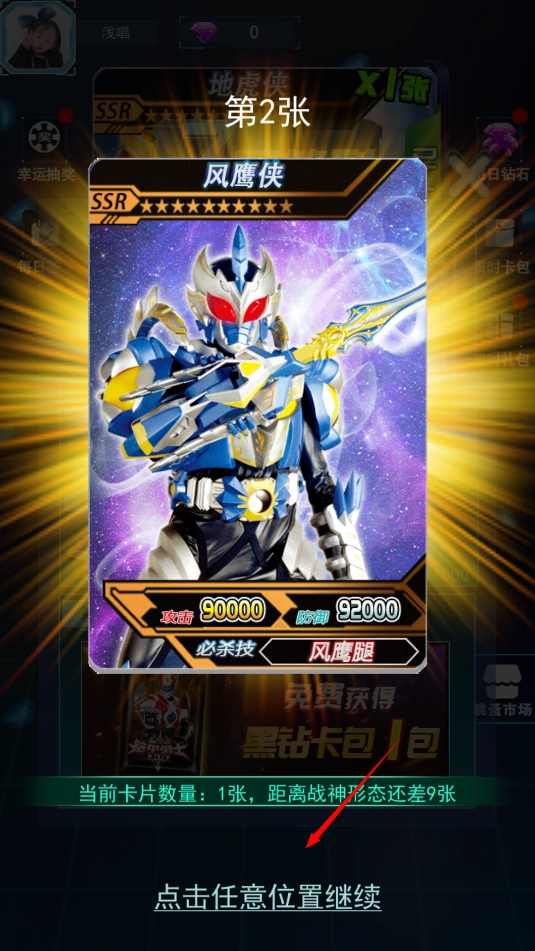 然后就会随机获取各种各样铠甲勇士卡牌