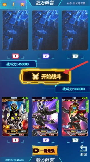 玩家准备好后,点击【开始战斗】即可开始游玩。