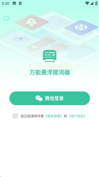 在本站安装万能悬浮提词器后打开,点击“打开”选择微信登录,并勾选同意隐私政策和用户协议。